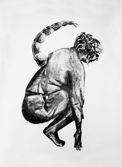 My inspiration for the Cave Canem series were the questions which occurred to me and have been pressing me for some times. What makes us evil? Is a person able to do the right thing in exteme situations? These questions were like a sctratch on a flawless surface. Cave Canem is a series of works mades in traditional intaglio and relief techniques. They combine traditional printmaking techniques witch the subject which is greatlyrelevent in our times and aesthetics that relations to exaggerated advertisements, billboards and the surrounding reality.