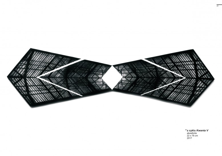 While working on my artistic diploma, I took up the subject of post-factory spaces, that is characterized by coldness and geometric structure. For the creation of a cycle of printmakingsQuantum inspired me observations of the environment, preference for simple things in their form, but not trivial, whose beauty must be seen, "explored." Geometry and architecture have become the main determinant of my perception.(...)