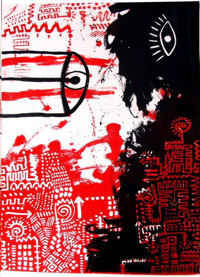 The subject of the main part of my diploma thesis is building walls and building divisions in everyday interpersonal relations. Their origin is a variety of disagreements and everyday events, which often can take on a value that is disproportionate to its own weight. for this reason. For this reason my work has taken a panoramic form, which aims to resemble a wall or even a mural, and thus it can become an object presenting or shouting subjective dissatisfaction or commentary to a sensitive situation as it happens in public space. Through the accumulation of strokes and spots, I wanted to refer to the amount of duties that we have to face every day, stuffing everything in time and chaos, which usually happens around. Figurative objects, like the texts contained in the works, are exaggerated and are to be a commentary on taking certain trivial matters seriously. A similar function is to be performed here by the use of a color that gives the work a free character and far from the seriousness mentioned above. The graphics cycle was made entirely by lithography, using asphalt, crayons, mascara and several reprints. I wanted the work to be expressive not only by the drawings themselves, but also by the use of various media to reflect the often chaotic nature of everyday life through its diverse track.